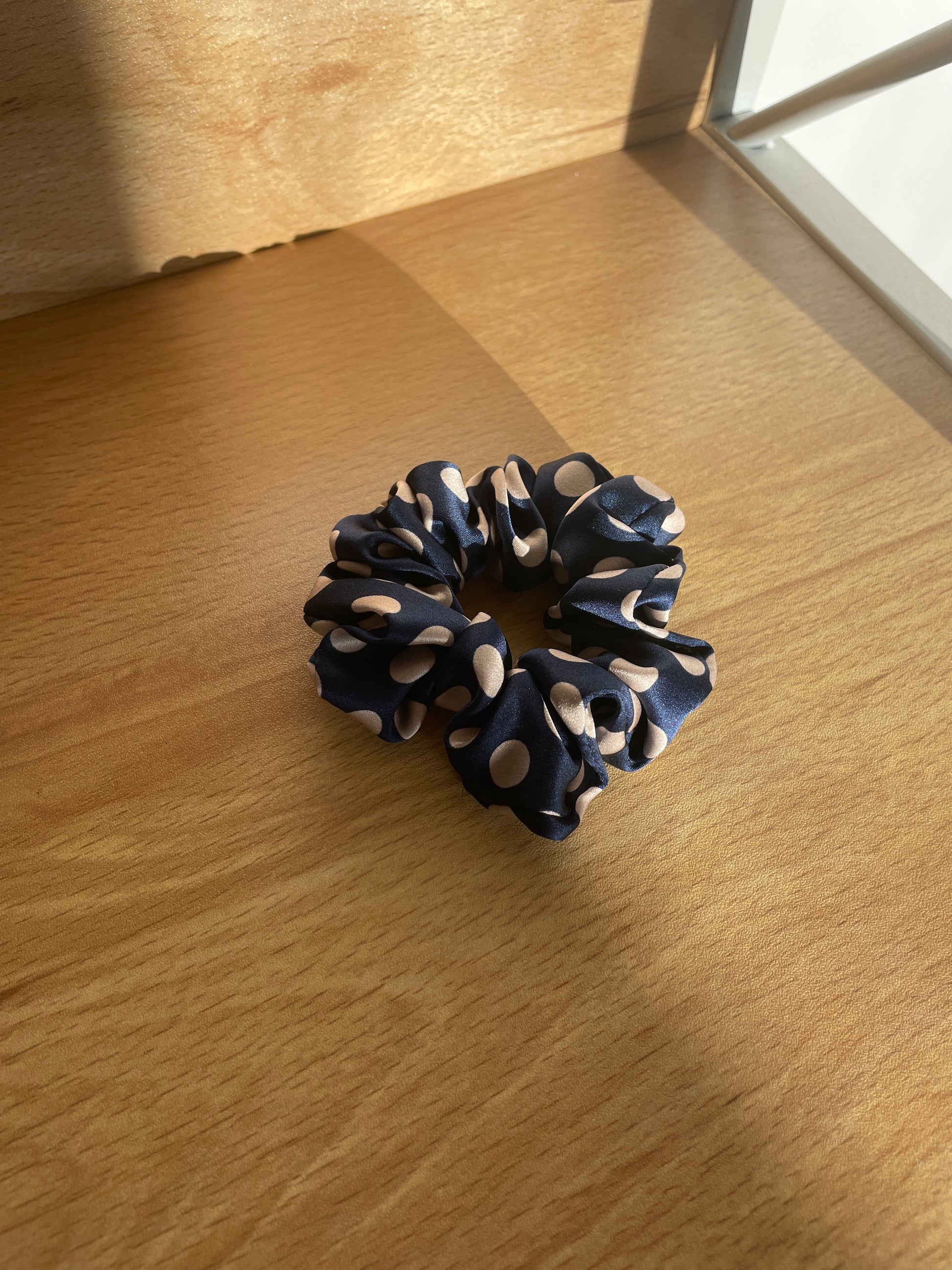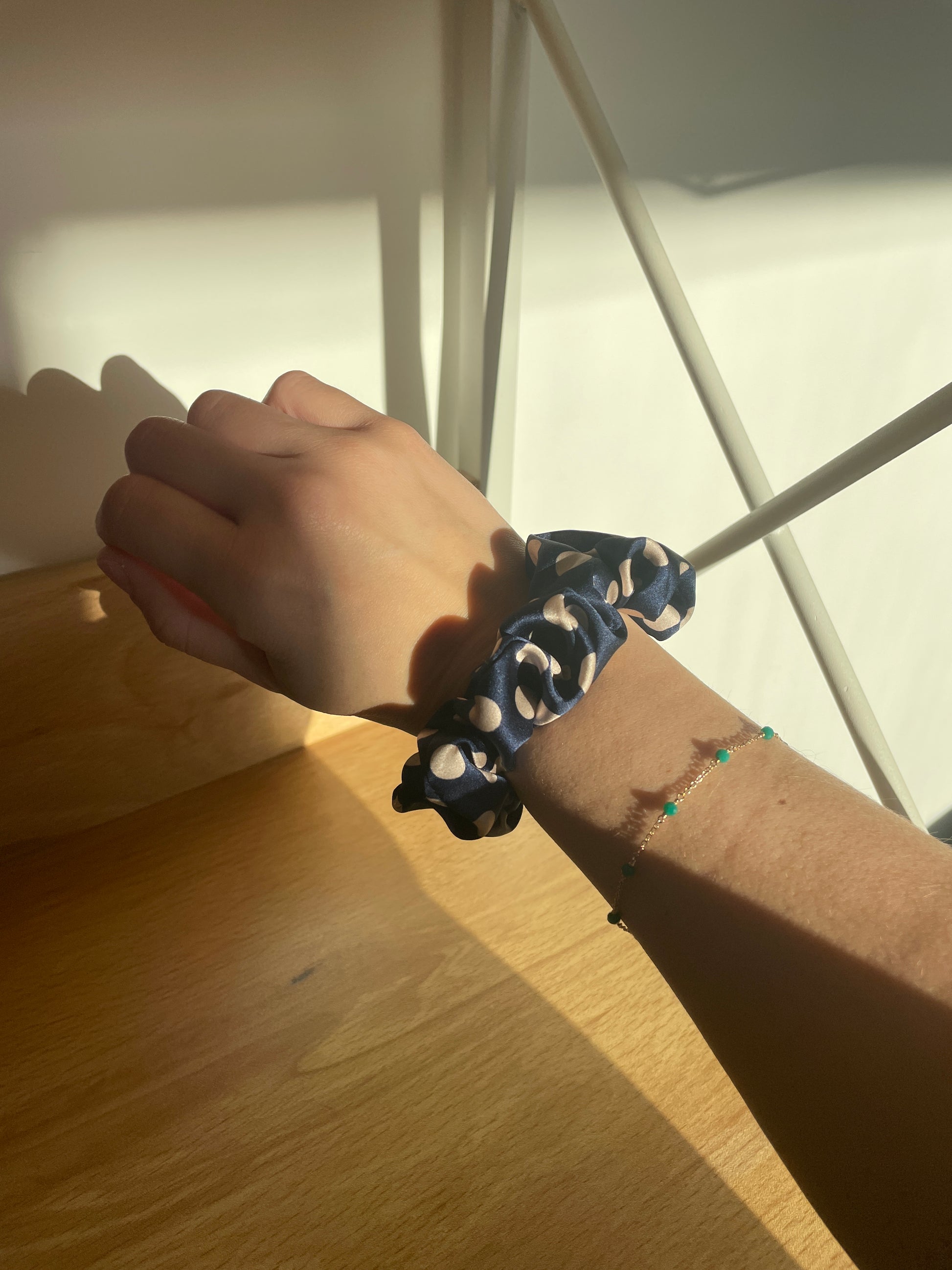 Chouchou en soie réalisé à la main. Il s'agit d'une pièce unique réalisée dans notre atelier de couture qui se situe dans la métropole Lilloise.